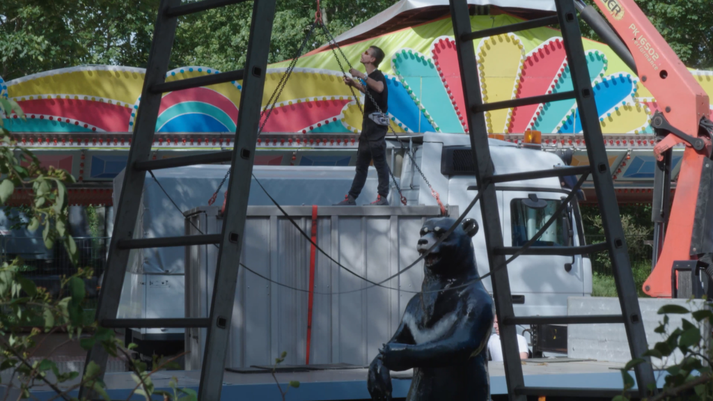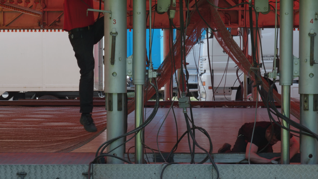 Humans are both thinking and working beings and playing beings. That is the fundamental condition of our lives. Thus, we allow easy steps to the fairground. It represents an escape from everydayness and is being fenced so that we can be cut off from reality. While we are yelling out a cheer on the attractions, there are workers behind the stage who live their reality. They eat and sleep in 15m2-sized mobile vans, constantly inspecting facilities and repairing machines with oil-stained hands. They hardly smile. When it occasionally appears on their faces, it is a sheer smile that completely removed the illusion of amusement.
