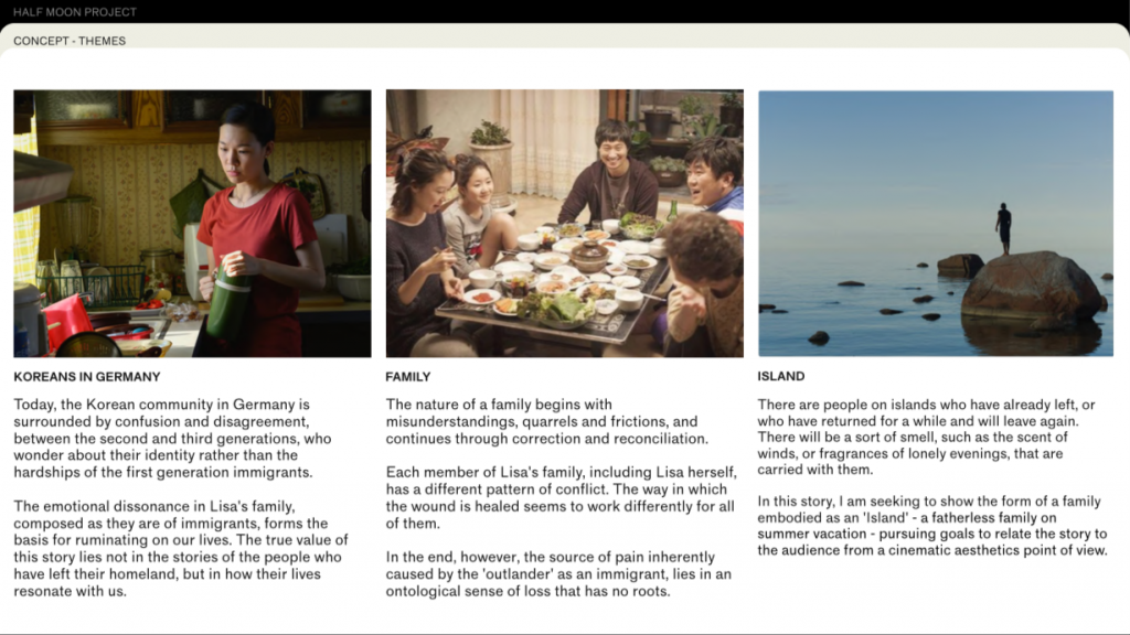 Family is the basis on which relationships are built. All characters in this story are looking for ways to cherish each other, and yet they end up failing to reach one another. I want the audience to find out what the string is that ties them up as a family and what this family portrait is in a modern sense. I am seeking to show the form of a family embodied as an ‘Island’ – a fatherless family on summer vacation – to acquire probability in terms of empathy, not in its practicality.